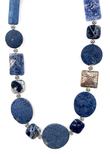 Australian Handmade Blue Necklace with Dumortierite Sodalite Kyanite and Sterling Silver