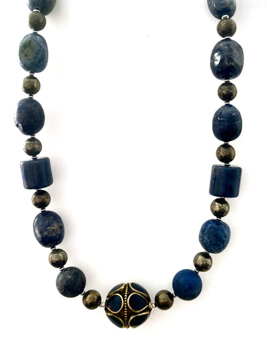 Australian Handmade Blue Necklace with Dumortierite Pyrite Turkoman Bead and Sterling Silver