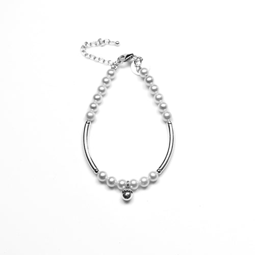 White Pearl Bracelet with Sterling Silver Tassel and Beads