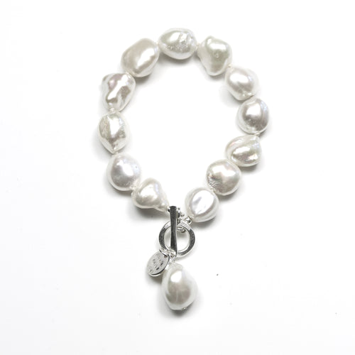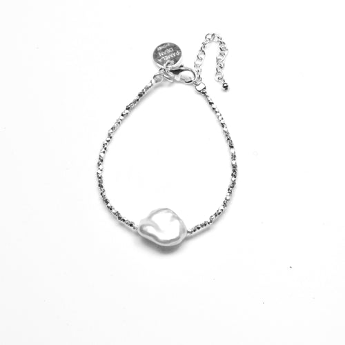 White Pearl Bracelet with Sterling Silver Heart and Keshi Pearl