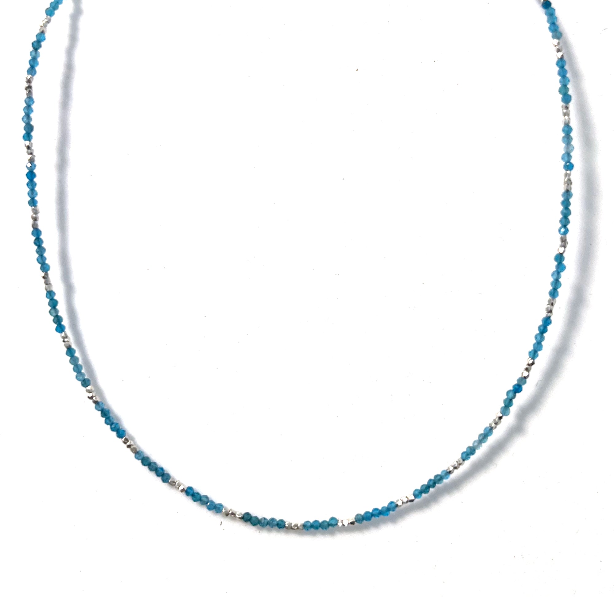 Australian Handmade Turquoise Colour Necklace with Apatite and Sterling Silver 38.2cms plus 5cm extension chain---beads are 2mm---matching Bracelet BR129X can be purchased as a seperate item