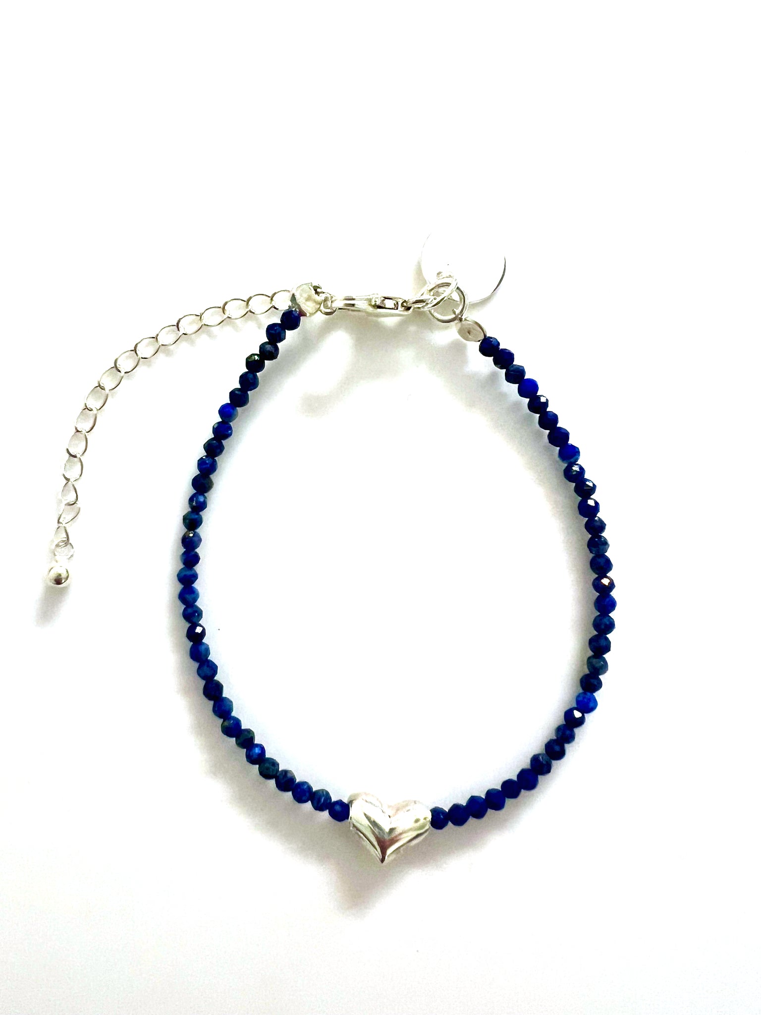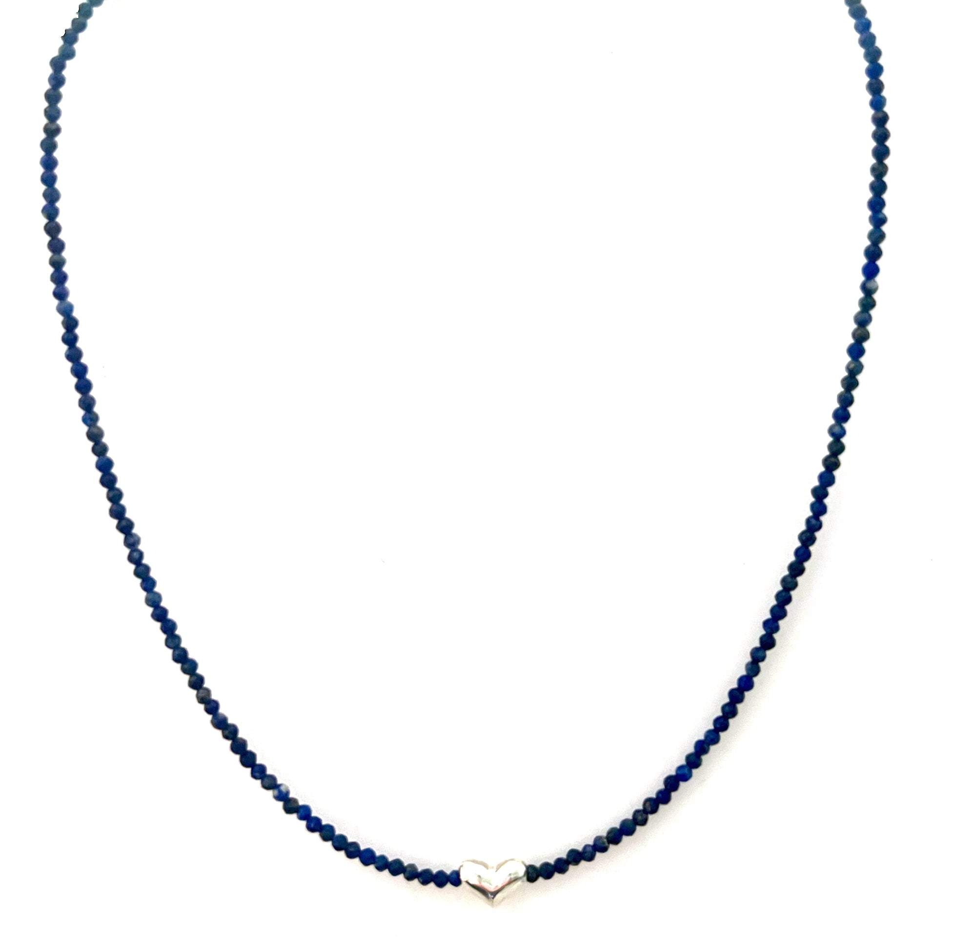 Australian Handmade Blue Necklace with Facetted Lapis Lazuli and Sterling Silver Heart 40.5cms