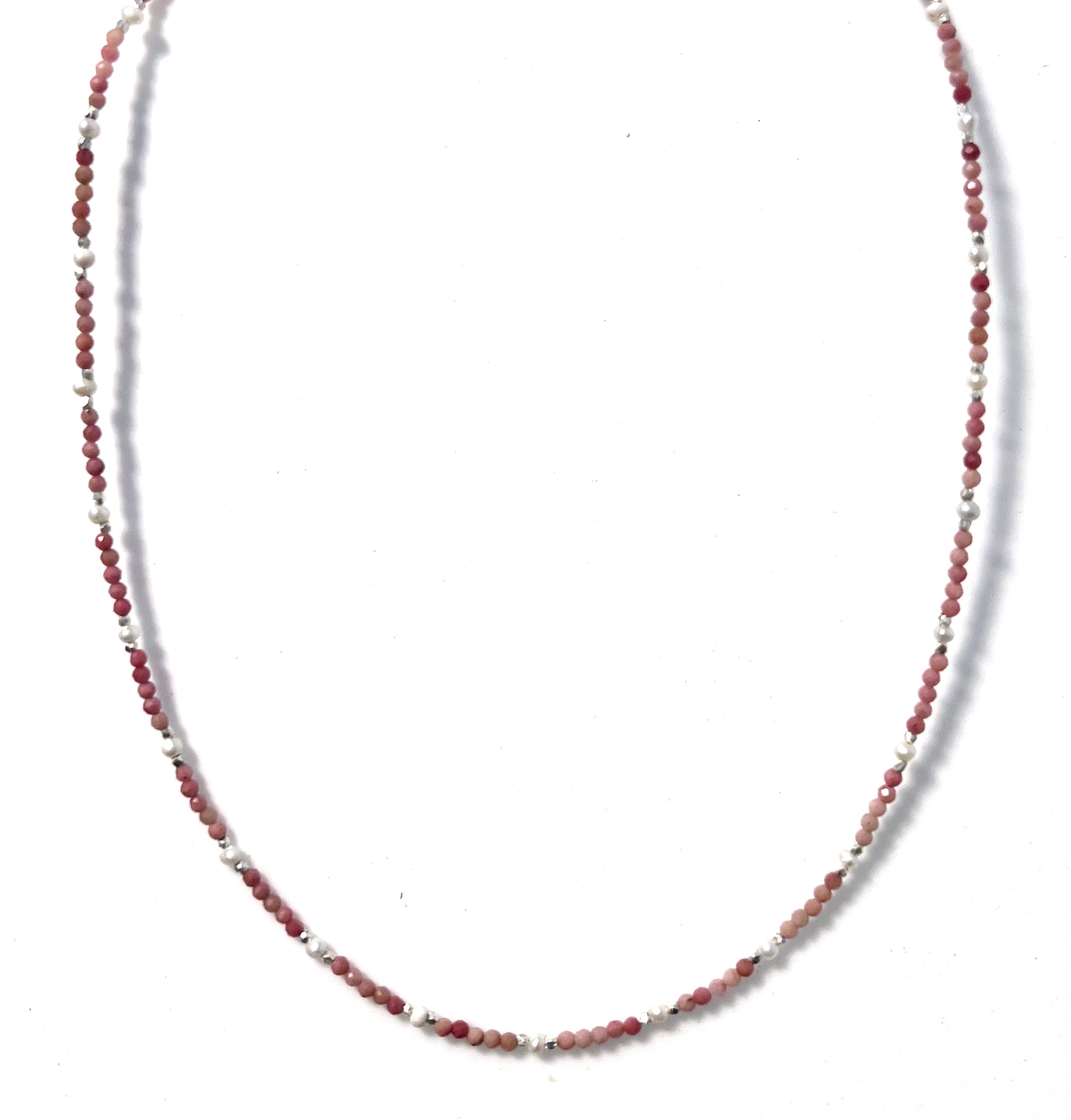 Australian Handmade Pink Necklace with Rhodochrosite Pearls and Sterling Silver 41cms plus 5cm extension chain --Beads are 2mm Matching bracelet PD125Z can be purchased separately