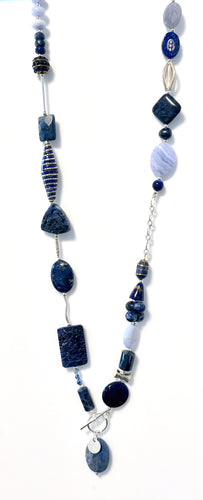 Australian Handmade Blue Necklace with Various Blue Gemstones and Nepalese Beads