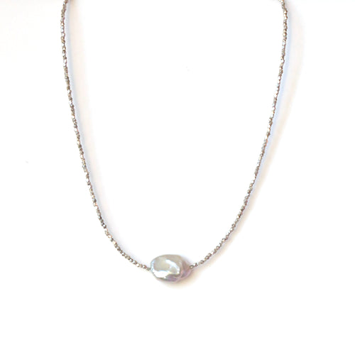 Sterling Silver Necklace with Keshi Pearl Drop Pendant